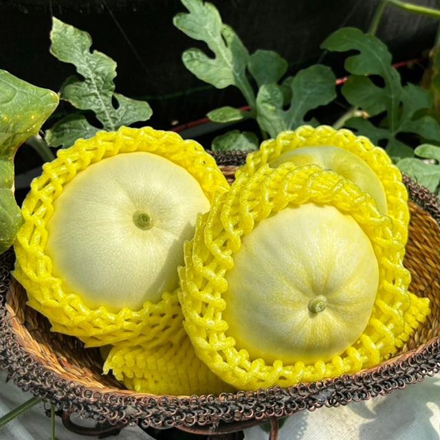 - 薄皮甜瓜,果實呈扁圓形,成熟時呈銀白色並帶有黃白色澤。外層清脆,內層柔軟細嫩,滋味香甜多汁,香氣淡雅清新。